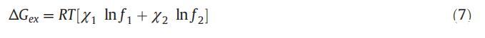 活度系數(shù)以及膠束摩爾分?jǐn)?shù)也可用于使用式(7)[56]計算混合的過量自由能(ΔGex):