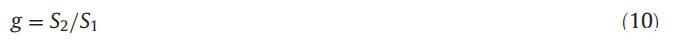 在迄今為止研究的所有情況下,無論是在純水中還是在二甘醇-水二元混合物中,我們觀察到電導(dǎo)在cmc前后以不同的速率增加。在cmc以下,兩親性分子是非締合的,表現(xiàn)為1:1電解質(zhì),并遵循Debye-Huckel-Onsager方程[58,59],而在cmc以上,表面活性劑分子聚集并形成膠束[58,60]。cmc以上純CET、[C10min][Cl]和CET+[C10min][Cl]混合物的電導(dǎo)率急劇下降是由于膠束的形成導(dǎo)致材料的質(zhì)量急劇增加,表面電荷密度凈降低。根據(jù)電導(dǎo)率與摩爾濃度圖中膠束后區(qū)域(S2)與膠束前區(qū)域(S1)中兩條相交直線的斜率之比計算g值,并可使用公式(10)[61]計算: