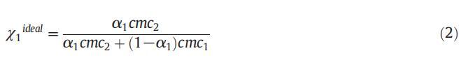 在理想狀態(tài)下,膠束摩爾分?jǐn)?shù)(χ理想)已通過公式(2)[50]計算得出: