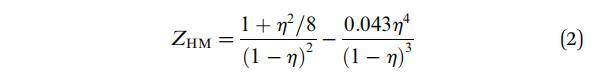 式中,η是表面堆積分?jǐn)?shù),它可以用顆粒數(shù)密度(p)和單個顆粒的體積直徑(d)表示為η=(π/4)pd2。對于我們的實(shí)驗,η介于0和0.91之間。ZHM的相應(yīng)值介于1和96之間。
