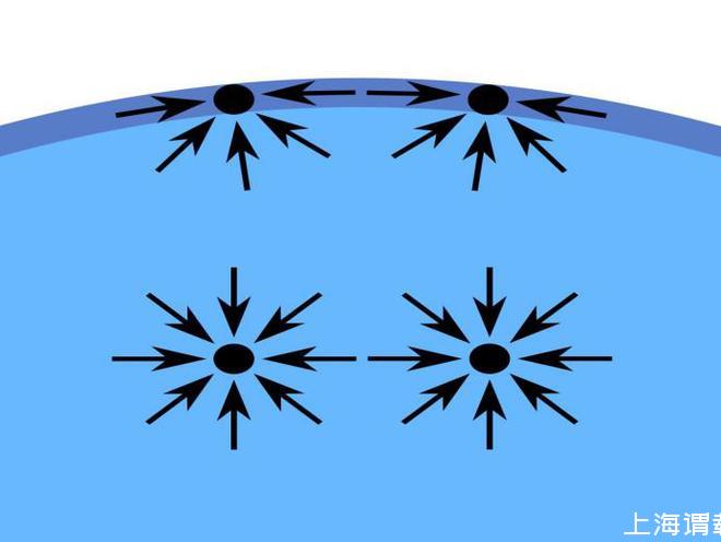 在液體與氣體接觸的表面層,表面張力也會(huì)出現(xiàn)表面收縮的趨勢(shì)。