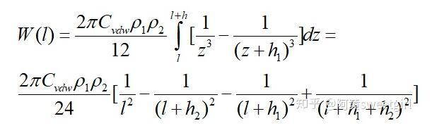 將單個分子換成有限厚無限大平板的單位面積,可得有限厚無限大平板之間的互作用勢為
