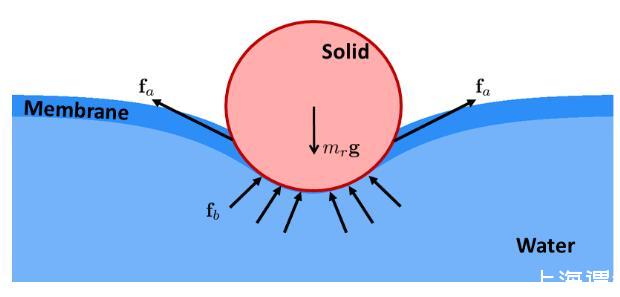 其中是流體表面的面積,稱為表面張力系數(shù)。當(dāng)流體與固體發(fā)生作用時(shí),流體表面的分子同時(shí)會(huì)受到固體分子的作用,從而將表面張力作用在固體上。固體根據(jù)表面特性不同可以分為親水和疏水兩類(lèi),疏水材質(zhì)在水面上會(huì)受到向上的表面張力作用,對(duì)于一些細(xì)小的結(jié)構(gòu)來(lái)說(shuō)這個(gè)力要比浮力更為明顯。比如說(shuō)水黽是一種可以生活在水面上的昆蟲(chóng),它的腳非常細(xì)長(zhǎng),并且有很多絨毛來(lái)保持疏水特性,因而水黽可以依靠表面張力維持自身的重量,并通過(guò)腳來(lái)劃動(dòng)水面來(lái)向前運(yùn)動(dòng)甚至跳起。