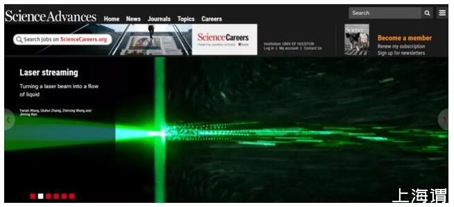 圖|Science Advances官網(wǎng)首頁報道光致超聲驅(qū)動宏觀流體運動(來源:Science Advances)