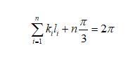 假設(shè)二維干泡沫中的任一氣泡如圖3b所示,氣泡的邊數(shù)為n,從a點開始,再回到a的邊長分別標(biāo)記為l1到ln,每邊所對應(yīng)的曲率為k1到kn(Plateau第一定律)。現(xiàn)在假設(shè)有一點從a點沿著邊向b運動,到b點時,所走的路徑為l1,轉(zhuǎn)動的角度為這條邊所對應(yīng)的圓心角(向外為正,向內(nèi)為負值),為k1*l1。此時要想繼續(xù)沿著邊運動,需要向內(nèi)轉(zhuǎn)動π/3角度(根據(jù)Plateau第二定律),如圖3b所示。轉(zhuǎn)動后繼續(xù)運動,直到到達原來的點a。此過程,n條邊總共在頂點處轉(zhuǎn)動的角度為nπ/3,在邊上轉(zhuǎn)動的角度為