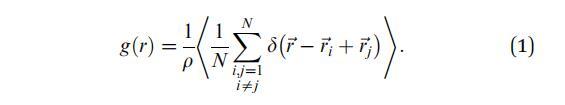 表征單層結(jié)構(gòu)的一個關(guān)鍵量是徑向分布函數(shù)g(r)。考慮到單層平面中域的均勻分布,g(r)表示在選擇為參考點的另一個域的距離r處找到域的概率: