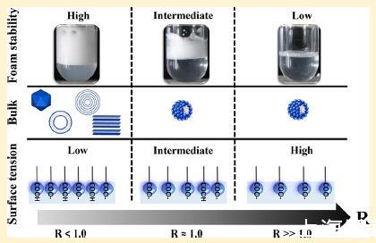 為了研究本體自組裝、界面性能變化和泡沫性能隨R的變化之間的相關性,我們通過結合不同長度尺度的實驗和技術進行了多尺度研究,以解釋宏觀泡沫性能,特別是泡沫穩定性。利用小角度中子散射研究了泡沫液體通道內的聚集結構。通過耦合表面張力和中子反射率測量確定表面性質。