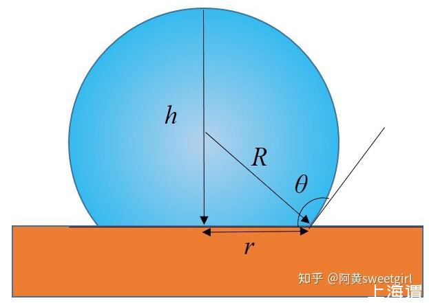 首先,此題必須分為兩種情形。第一種,是液體V很小時,此時表面張力占主導地位。此解法宮非前輩已經給出,但是其解析式不夠簡化。因此我進一步加以簡化。當表面張力占主導時,液滴成完美的球缺狀,如圖1所示。