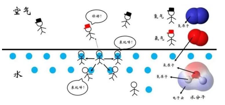 然而,這種關(guān)系的穩(wěn)定程度是與雙方分子的種類有關(guān)的。如圖4所示,對于水-空氣的界面而言,處于表面的水分子周圍的分子種類較為豐富,除了其他水分子,還有空氣中的氧氣、氮氣等分子。