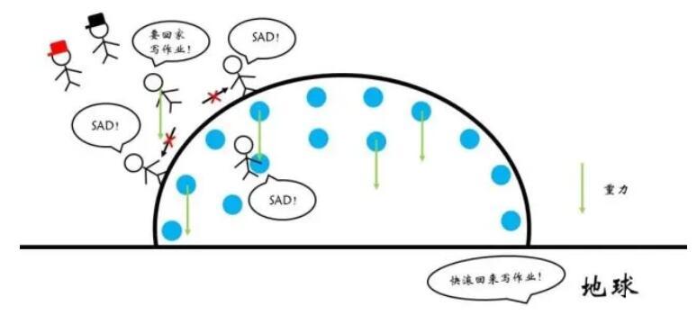 這樣的理解雖然直觀,但是缺少了幾分更加深入的視角,也沒辦法真正理解什么是表面張力。那怎么辦呢?我們來看看與力對應(yīng)的能量(特指勢能)。以重力為例,大家可能聽說過重力勢能,即某一地球附近的物體由于處于一定的高度而蘊含的能量。更加直觀地講,如果以地面為勢能零點,則物體在重力的作用下下落到地面所能釋放的能量就是重力勢能。