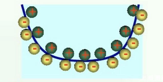 界面的同一側帶有相同符號的剩余電荷,由于同性電荷之間的排斥作用都力圖使界面擴大,兩作用力剛好相互抵銷。