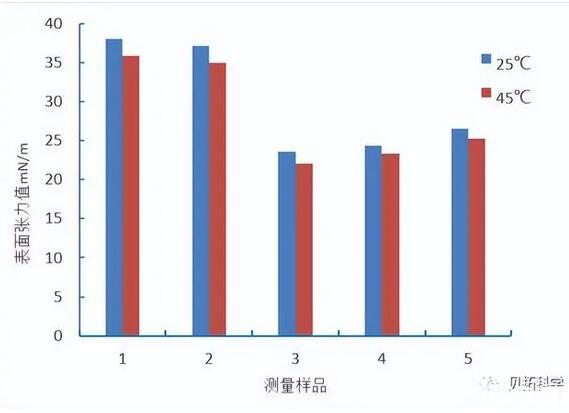 測量儀器:貝拓的KF100專家型表面張力儀測量溫度:25℃和45℃