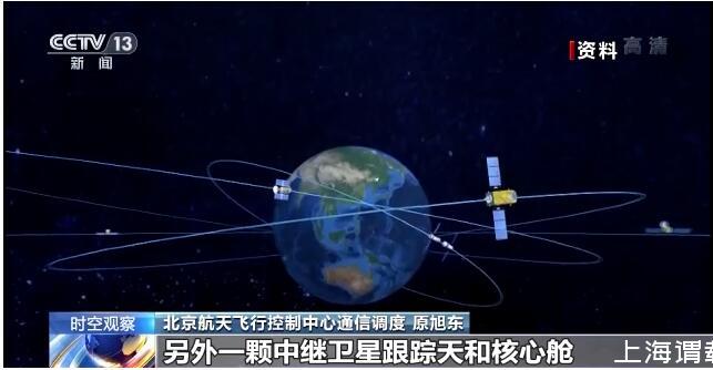 北京航天飛行控制中心通信調度原旭東:一顆天鏈中繼衛星跟蹤問天實驗艙,另外一顆中繼衛星跟蹤天和核心艙,兩個跟蹤弧段是有交疊的,首先問天實驗艙進行圖像話音的下傳,然后在中間兩個星的搭接弧段,我們擇機進行圖像話音的切換。