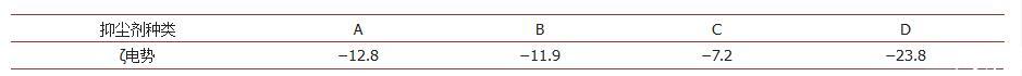 表2.四種抑塵劑的ζ電勢