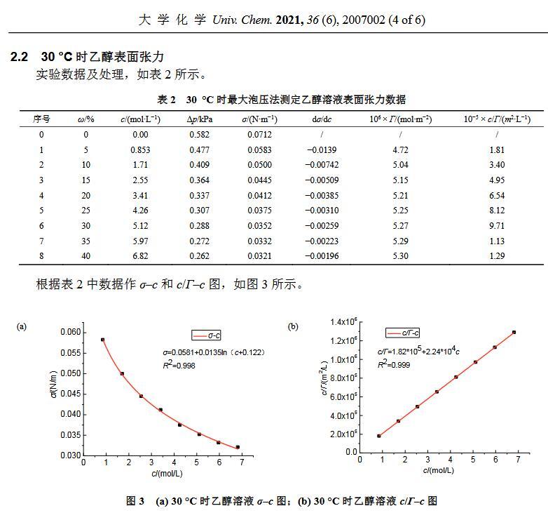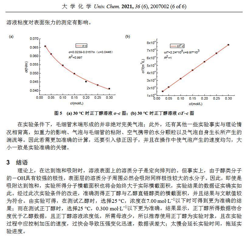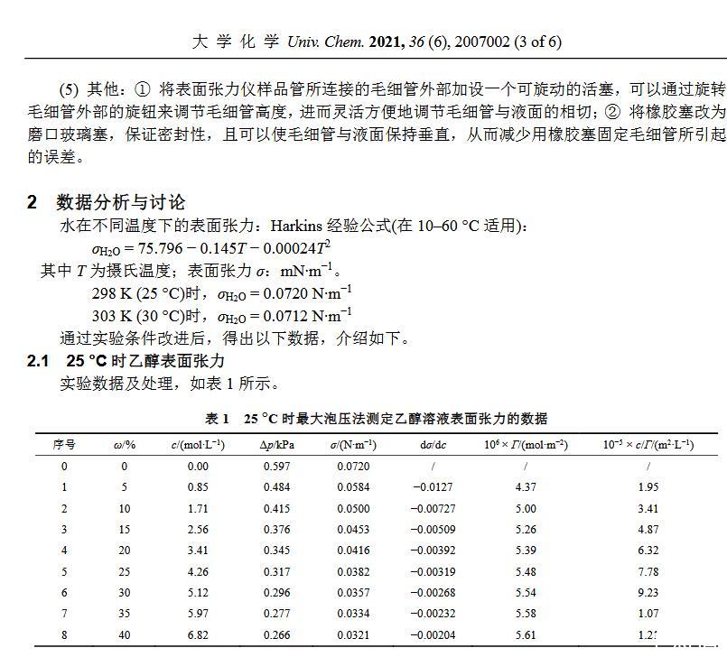 最大泡壓法測(cè)定溶液表面張力實(shí)驗(yàn)條件的優(yōu)化