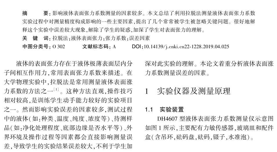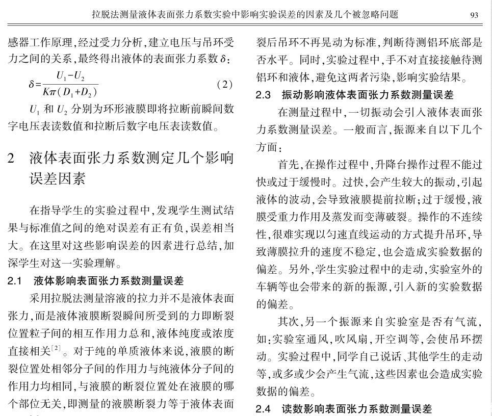 拉脫法測(cè)量液體表面張力系數(shù)的影響因素分析