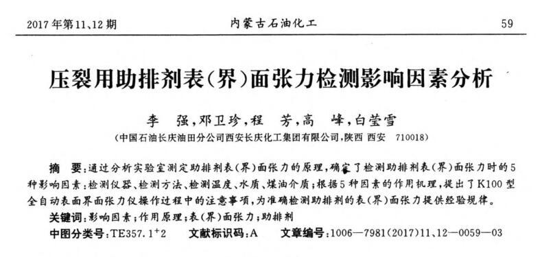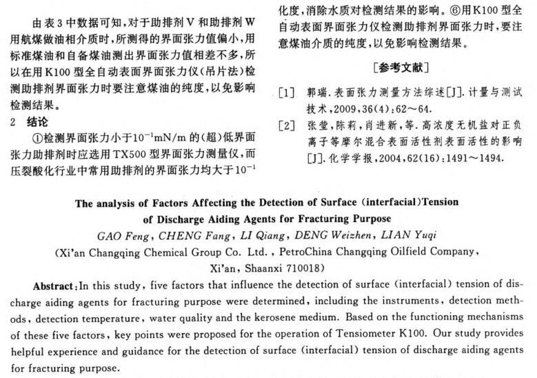 > 新型多功能解堵體系-單相酸體系乳化、界面張力測定及現(xiàn)場應(yīng)用效果(二)