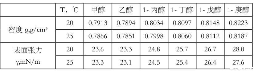 表面張力的意義,醇類在不同溫度下的表面張力測定數(shù)據(jù)