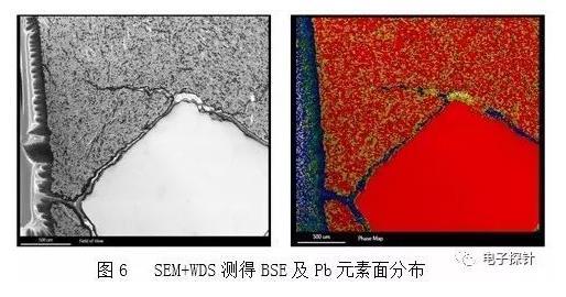 圖6為某廠商生產的SEM+WDS測試結果。其測試的大小范圍受限,還不到EPMA測試區(qū)域的一半,(EPMA可以使用樣品臺掃描,實現(xiàn)更大區(qū)域的分析)也就不能查看整個負極板上待測元素的分布結果。由于S元素的含量很低,測試沒有給出結果。