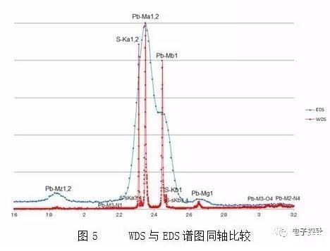 我們把此兩個譜圖放到一個坐標軸上就能更好的對比,組合中圖5的橫軸為能量(單位keV),WDS的分辨率比EDS高出一個數(shù)量級。
